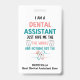 Funny DENTAL ASSISTANT The Whole Tooth Name Badge in WHITE with CUSTOMIZABLE TEXT. It's a great time to give dental assistants the recognition they deserve as important members of the dental team. This dental assistant shirt is specially designed to show your appreciation to your favourite dental assistant, dental hygienist or dental squad member during Dental Assistant Appreciation Week. The wording reads I AM A DENTAL ASSISTANT, JUST GIVE ME THE TOOTH THE WHOLE TOOTH AND NOTHING BUT THE TOOTH in colourful typography and using molars to replace the word TRUTH. You can PERSONALIZE this BADGE by adding your name(s) on the front and additional details on the reverse. This cute Dental Assistant Badge would make a great gift to buy for your dental assistants and/or co-workers to wear throughout the year. Also in black.
