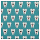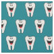 Funny Dentist Cute happy Tooth Pattern Fabric on a turquoise blue background. Easily Choose the type of fabric, size, and quantity required from the options menu.