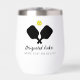 Who's your designated dinker? Funny wine tumbler features crossed Pickleball Paddles, a ball and 2 lines of personalised text. Perfect as a club or tournament award, gift for your pickleball bestie friends, a pickleball trip memento, drink ware for apres pickleball gatherings and just everyday pickleball fun! Easily change the paddle, ball and text colours.