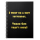 Yellow text humorously comments on a short-lived diet, set against a plain black background. The bold font emphasises a sense of relief and amusement.