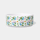 This is a heavy, durable bowl decorated with Tibbies of many colors, the perfect size for hungry/thirsty Tibs. The design is interesting and printing clear.