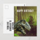 Funny birthday postcard features dinosaur head with primeval forest background and customisable "Happy Birthday" text. Inside customisable text: "from one dinosaur to another". Perfect for celebrating milestone birthdays