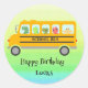 Funny dinosaur school Bus Birthday party DIY Name Classic Round Sticker