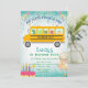 Funny dinosaur school Bus Birthday party DIY Name Holiday Card