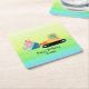 Funny dinosaur tractor Birthday party DIY Name Square Paper Coaster