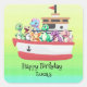 Funny dinosaur Yacht Birthday party DIY Name Square Sticker