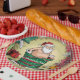 A humourous and quirky Christmas theme, showcasing a comical Santa Claus in a playful, casual state of undress—wearing only his hat. The background consists of repeating whimsical elements, such as Santa in various playful positions and festive objects like wrapped presents and elves, all set against a green backdrop adorned with snowflakes, stars, and Christmas décor elements.