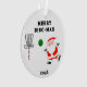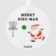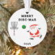Creative disc golf Christmas keepsake holiday gift featuring cartoon Santa Claus frolfing through the snow. To personalize edit text to change name and year.