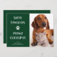 This adorable Christmas card for cat and dog lovers says "Happy Howlidays" and "Meowy Christmas" in modern whimsical white typography, with a cute paw print and room for your favorite photo of your puppy and kitten! The background is a festive, green color.