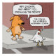 This funny poster features a dog who wants to know why the chicken isn't crossing the road. It's the jokes — the horrible jokes that keeps the chicken sitting on its tail feathers. ©2015 Chuck Ingwersen