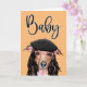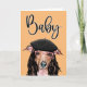 A fun and eye-catching design of an Italian Greyhound dog wearing a long brown hair wig; trendy pink spectacles and a French black beret. The words, baby, appear above her in a decorative calligraphy style font and the inside reads, let's get this party started. Customise the message and the colour of the background to suit your requirements.