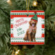 Funny Dog with Elf Hat and Scarf Red Green Custom Ceramic Ornament