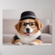 Funny dog with glasses and hat poster