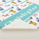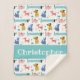 Funny, little, colourful dog pattern. Cute baby blanket personalised with the name of your little one.