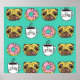 funny Vintage dogs pug puppies pattern doughnut coffee background