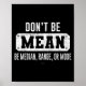 Funny Don't Be Mean, Be Median Graphic Sarcastic S Poster