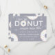 Cute, fun doughnut Save the Date cards. Featuring white doughnuts with colourful sprinkles on a grey background, including a funny doughnut diamond ring - a doughnut with a sparkly diamond like an engagement ring, with a punny "You DONUT wanna miss this!" design. You can even change the background colour by using the Customise / Personalise tool.