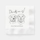 Add a playful touch to your wedding reception or bridal shower with these "Drinks on Us" cocktail napkins featuring a custom illustration of your two dogs. Upload a photo or sketch of your pets and personalize with their names for a fun, memorable bar detail your guests will love. The clean black and white line art design pairs effortlessly with any wedding color palette or event theme. Available in cocktail, lunch, and dinner sizes with multiple napkin color options. Please reach out for design assistance before placing your order.