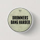 "drummers bang harder" pin-back button for drummers is available in several round sizes.