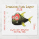 Funny custom beer label done in white with cartoon like graphics of a drunk looking fish. Personalise all the text to read what you want. Great for branding your home brew beers.