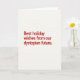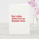 The card features a simple design with a bold message that reads, "Best holiday wishes from our dystopian future." The message is in bright red text, set against a clean, white background. The space around the text draws your eyes to the words, giving them importance. The overall look is almost like something you'd see in a serious, corporate setting.