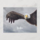 Greet them with "Hello" with this funny all occasion greeting postcard featuring an eagle I've named "Dale." Dale and his female counterpart, "Marge" reside in the lake town of Kirkland, Washington. Perfect for the person who loves bald eagles or other birds. Inside of the card features the same photo, but with a white overlay, allowing for easy-to-read writing. Photography and design ©T.K. Goforth and signed by the artist, all rights reserved.