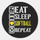 Funny Eat Sleep Softball Repeat Baseball Players Classic Round Sticker