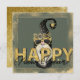 Cute elf design New Year's Flat Greeting Card with reverse side gold faux glitter background. Stylish font typography text can be easily customised with your own brief message. A fun card to herald in 2022.