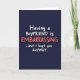 This greeting card shares a witty message that mixes affection with gentle teasing. Set on a deep navy blue background, the design feels calm and modern while keeping the focus on the words. The message is centered and easy to read, written mostly in a white, handwritten-style font that feels personal and conversational. The phrase builds anticipation until the word “EMBARRASSING” appears in bold coral-pink letters, instantly drawing the eye and delivering the humor. The contrast between the dark background, glowing white text, and bright accent color gives the card strong visual appeal. This card is a great choice for Valentine’s Day or anniversaries, especially for couples who enjoy joking with love and honesty.
