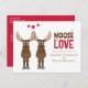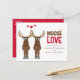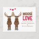 Cute Whimsical Moose saying "it moose be love". This design features engagement cute whimsical fun funny invitations, perfect for wedding engaged couple celebration celebrate get together, a humour moose animal heart love, it moose be love quote, a creative unique cool typography font, trendy stylish modern light style, couple husband wife, red cartoon graphic illustration hearts, cute engagement budget postcard
