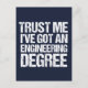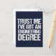 Trust Me I've Got an Engineering Degree. A graduation humour postcard in navy blue for a funny engineer after they graduate college or university.