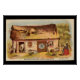 Amusing woman gasps, "Goodness Gracious what a long horse" at seeing one horse head in barn window on right, with the tail end at left in the barn door. An ephemeral advertisement for stoves in a colourful illustration.