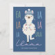 "Fa La La La La La La Llama" Christmas card features a cute llama in winter hat and Christmas lights on a navy blue background with "Fleece Navidad" holiday greeting and pastel polka dot pattern on the reverse side. Art by KL Stock.