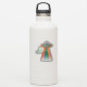 * Illustration of an alien a making funny face, while in his spaceship. Rainbow beams from below.