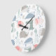 Funny Face Cute Doodle Animal Pattern Large Clock