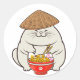 Funny fat cat is eating noodles classic round sticker
