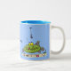 Funny fat hungry green fish fishing cartoon Two-Tone coffee mug