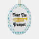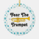 Funny Fear The Trumpet music quote comes on this snowflake bordered musical instrument ornament for Christmas.