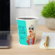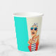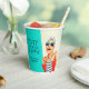 Host an outrageously funny and unique birthday party for a fabulous woman celebrating her 50th Birthday with this retro glam 50th Birthday Party paper cup design. The design features a kitschy stylish woman in striped sunglasses and hair turban with a polka dot bag and striped towel, rocking her attitude. The humour is carried out in the bold text title "FIFTY IS THE NEW F-BOMB". Personalise the name with the fabulous Birthday Girl. The retro colour scheme of aqua, beige, navy and red adds to the fun of this design.
