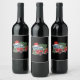 Funny Firetruck Santa Hat Christmas Tree Lights Wine Label