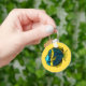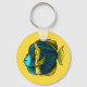 Cute fish keychain with a digital artwork depicting a funny tropical angelfish with long eyelashes in lovely blue and yellow colours.