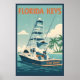 Funny Florida Keys poster rendered in the iconic style of the WPA National Park posters from the 1930s and 1940s. If you like anthropomorphic animals, in this case, an anthropomorphic Great White Shark is fishing off the Florida Keys, then this WPA-style poster is the funny poster for you.