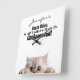 Tick-tock! Tell the Time with this Funny Cat Clock! This Adorable Kitty Clock will be the Purrfect present for any Cat Lover! It makes a wonderful addition to any Crazy Cat Lady Home! This Whimsical Cat-themed Wall Clock features a Cute Cat sneaking around the base of the Clock. You can easily Personalise this Cat Clock by Adding Your Own Name! The verse says, "Jennifer's House Rules: #1 All Visitors Must Be Cat Approved!" Personalise this Unique Wall Clock to your Hearts content. Just Add Your Own Name!