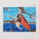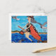 Funny Flying Witch Broom Cat Seagulls Beach Postcard