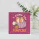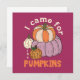 Funny four-pumpkins illustration. purple background and the saying: I came for the pumpkins. Perfect fall decoration for everyone, who loves cute pumpkins and funny sayings.