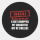 Funny Fragile I Just Dropped My Daughter Off At Co Classic Round Sticker