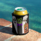 Can Cooler Koozie Sleeve printed with Funny Frankenstein, Ghost, Invisible Man and Pumpkin artwork design image TheFabricSeal at Zazzle is a grand fun addition in our Halloween Collection featuring four Halloween fan favourites. This fun design of wooden ice cream stick figure animated cartoon characters is in celebration that Halloween Is Every Day. Frankenstein escaped from his castle in Geneva, Switzerland. Ghoulish Ghost with bed sheet cover and goofy scary peekaboo eyes. The Invisible Man is all bandaged and wrapped up for a real good time. The carved Jack O Lantern Pumpkin is ready for lighting up the Happy Halloween spirited glow all around the world. Colour palette tones of black, white, grey, grey, tan, beige, brown, orange, purple, green, pink and red colours. Please check out all of our great Halloween art design and products in our shop. Thank You 👻🧛♀️🦹🏻♀️👀🤡