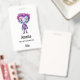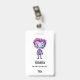 Name badge with a cute illustration. Frankenstein monster with pink and purple hair and a dapper coat and tie.