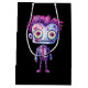 Gift bag with a cute illustration. Frankenstein monster with pink and purple hair and a dapper suit and tie.