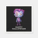 Paper napkins with a cute illustration. Frankenstein monster with pink and purple hair and a dapper coat and tie.